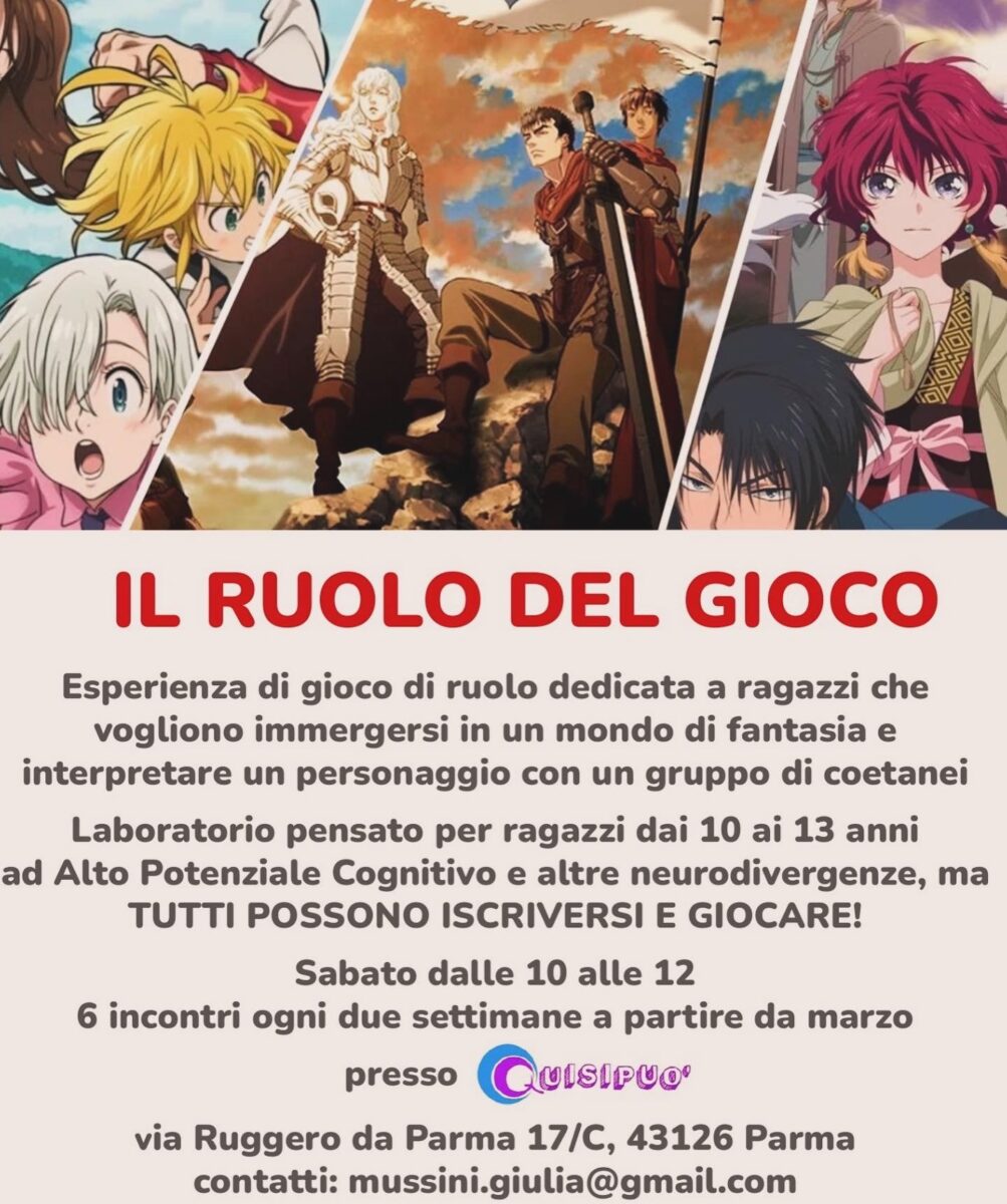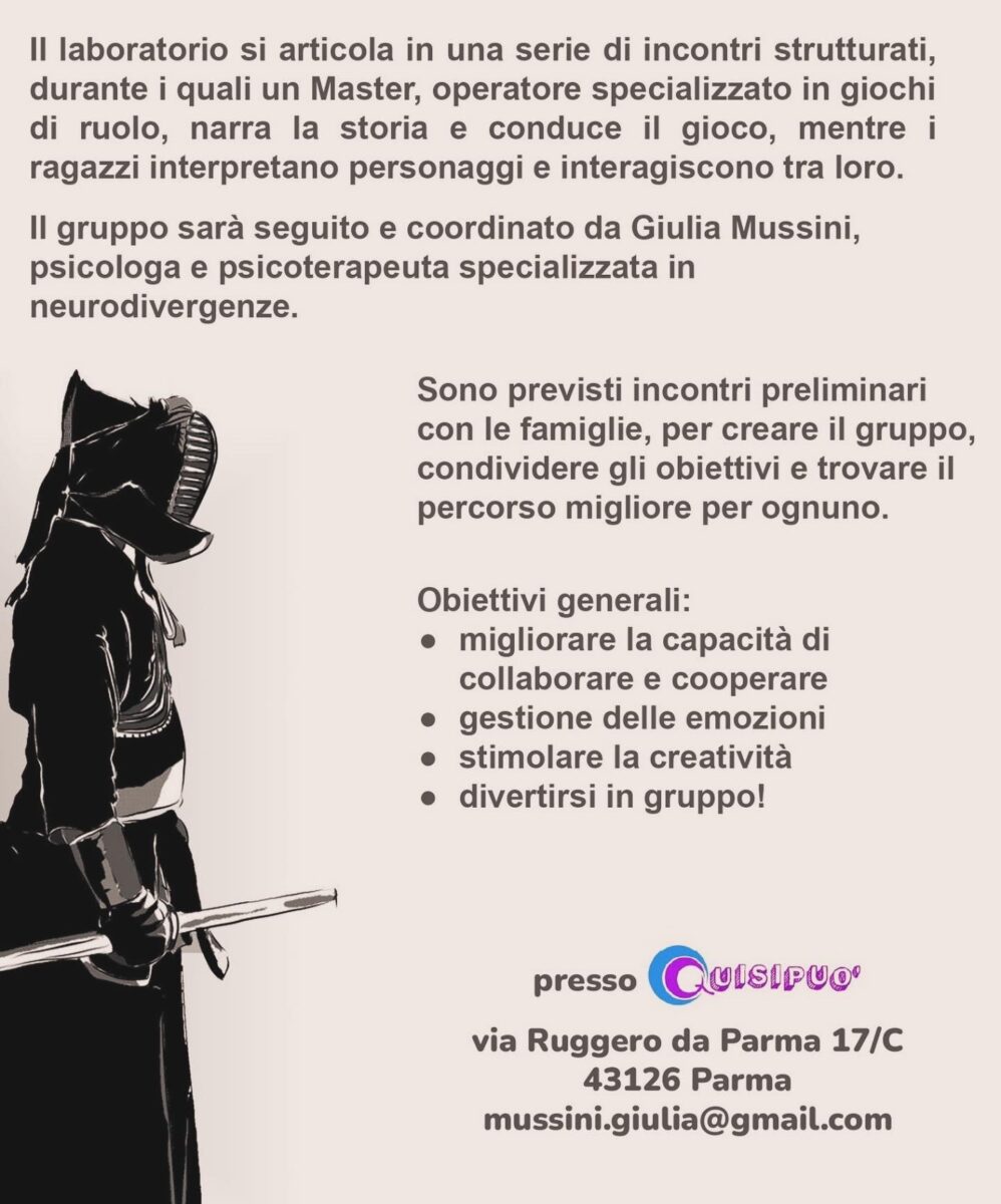 Organizzo un laboratorio a PARMA di Giochi di Ruolo per ragazzi ad Alto Potenziale Cognitivo, dai 10 ai 13 anni, ma aperto a chiunque abbia voglia di mettersi in gioco!!